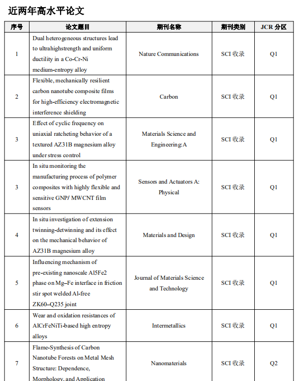 学院紧密围绕新材料领域发展趋势,在航空航天复合材料制造、炭纳米复合材料结构功能一体化、晶体取向与变形机制、焊接冶金与焊接、合金凝固与调控、高性能轻合金塑性成形、高温合金设计开发等研究方向形成航空航天特色。近5年承担军委科技委国防创新特区、国防基础科研、总装预先研究、国家自然科学基金等纵向课题100余项,沈飞公司、中国南车等企业合作项目80余项,科研经费总额7547余万元。获辽宁省科技进步/技术发明一等奖3项、江苏省科技进步一等奖1项,其它省部级奖励10项,鉴定成果3项,授权发明专利58项,发表期刊论文446篇,其中在Nature Communications等知名期刊发表SCI论文194篇。研究成果在新能源电动飞机、型号飞机、高铁等军民重要领域得到应用推广,杜兴蒿教授团队研发的超强中熵合金和卢少微教授团队研发的微纳米传感器得到了国内媒体关注。