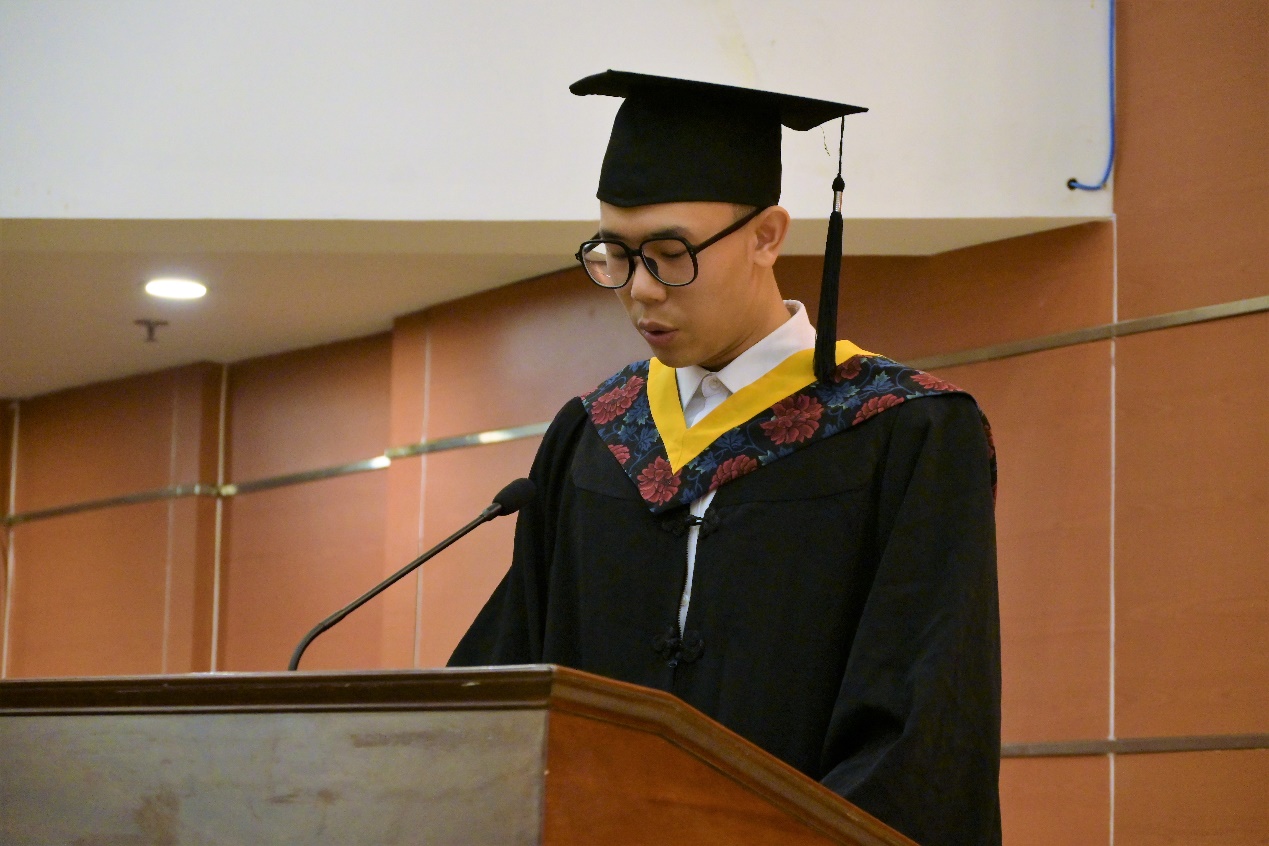 2022届毕业生学生代表18级焊接技术与工程李浩上台发言,对四年来的大学生活总结和回忆;