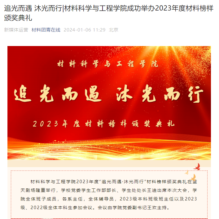 追光而遇 沐光而行|yl23411永利集团成功举办2023年度材料榜样颁奖典礼