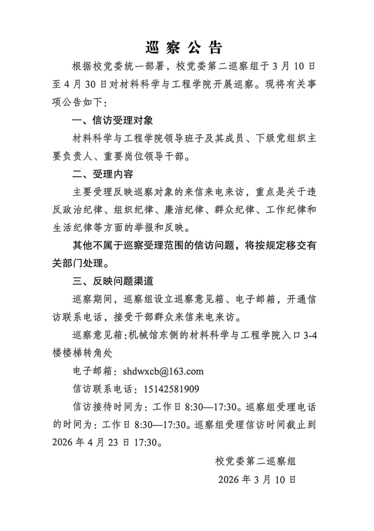 巡 察 公 告