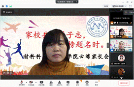 此次云端家长会采用了线上视频会议的方式,由各年级辅导员老师主持,学院领导发言致辞。首先,学院领导以及老师对各位家长的参会热烈欢迎并表示衷心的感谢,这是孩子教育的重视,更是对学院工作的支持。会上切实了解了学生及家长的问题与诉求,充分进行了家校沟通,并就关于学院开学考试安排、假期工作安排、疫情期间注意事项、就业考研等问题向家长们做出了阐述。