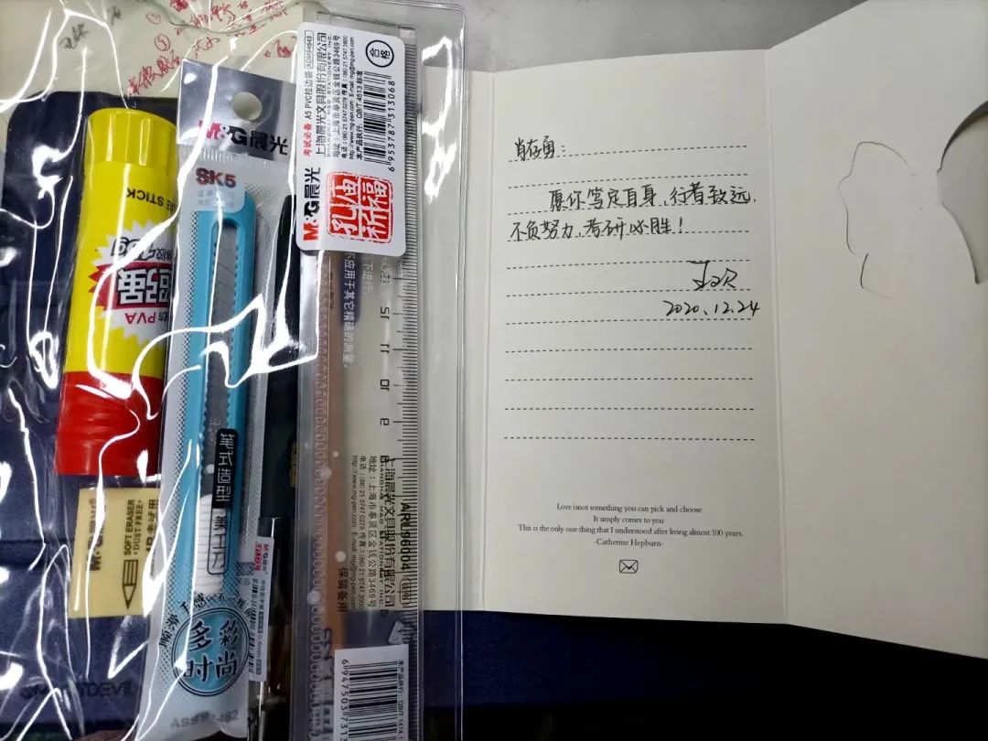 辅导员为学生手写祝福贺卡、准备考研文具