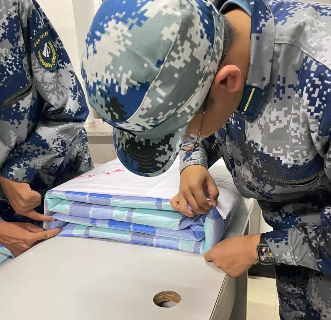 除了军训场上的军姿动作,内务课也是军训的必修课。操场上,教官手把手教新生如何叠豆腐块被褥,并强调内务标准。而新生整洁的床铺,摆放整齐的物品,窗明几净的宿舍就是新生对军训效果最完美的体现。