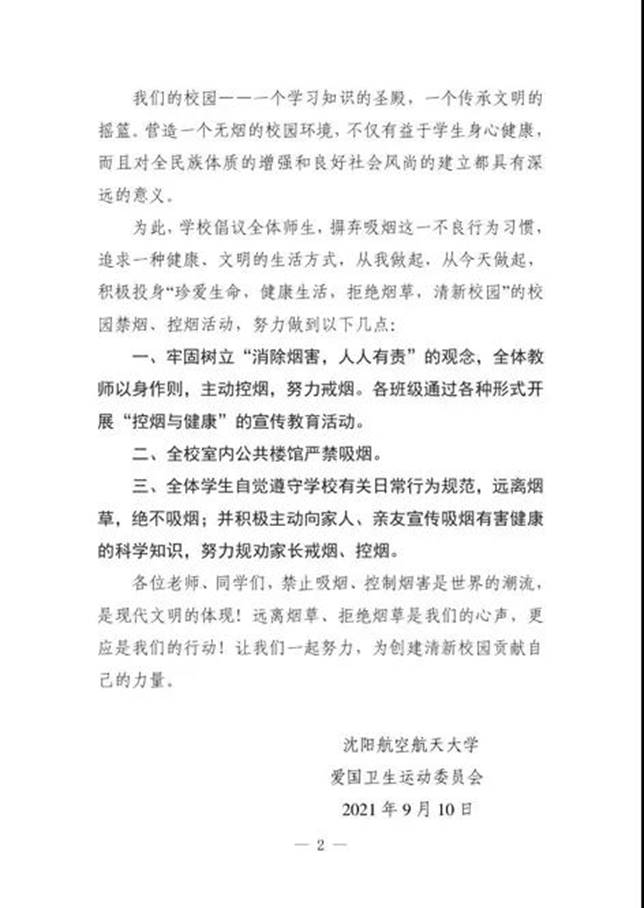 作为新时代的大学生。我们要时刻警惕吸烟的危害,坚决拒绝吸第一支烟,坚决拒绝吸二手烟,切实做好禁烟的宣传者和实践者,为把我校建设成为无烟学校、和谐校园而努力!