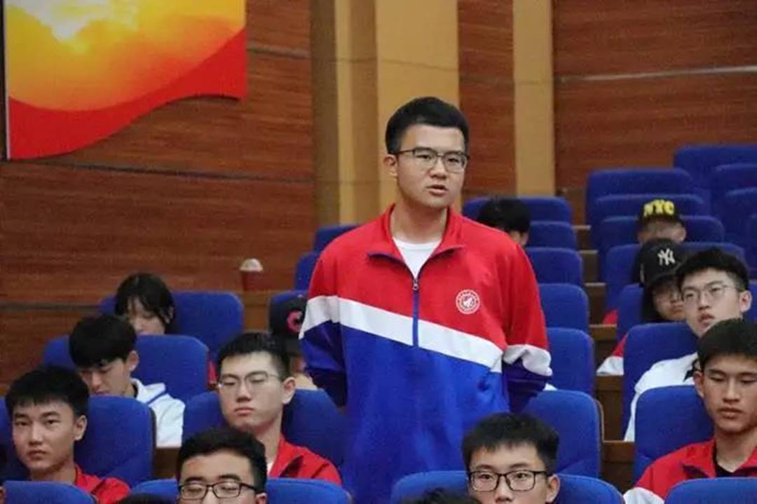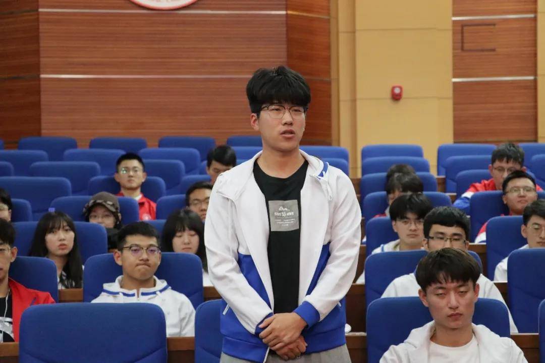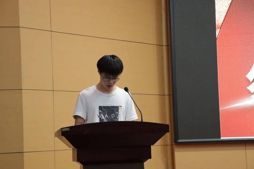 学生第一党支部党员王景宽发言。他表示,作为新时代中国青年,我们要铭记历史,在工作学习中精益求精、刻苦钻研,努力成为德智体美劳全面发展的社会主义建设者和接班人,为中华民族伟大复兴的中国梦不懈奋斗!