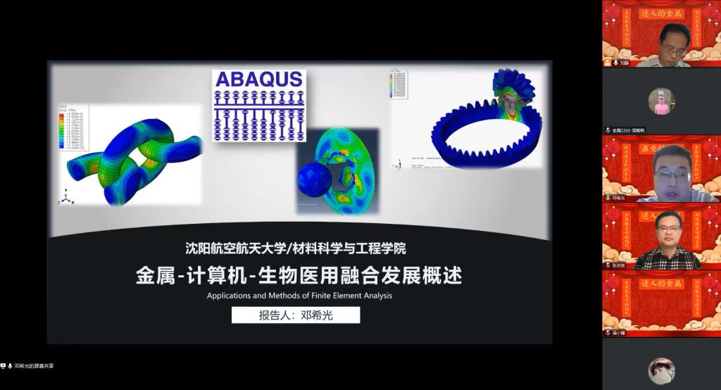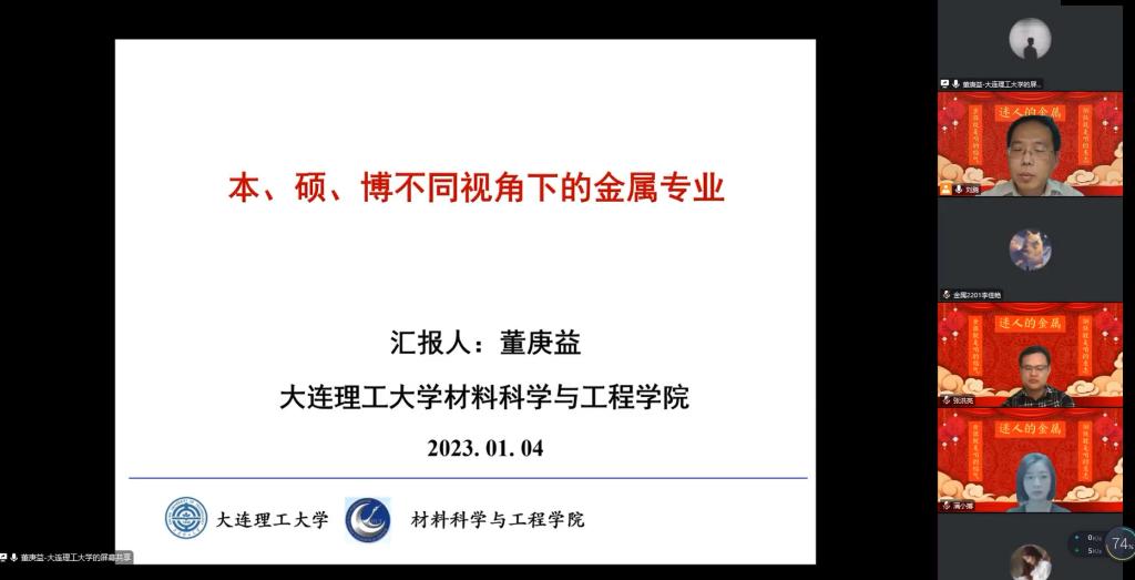 1月4日,yl23411永利集团金属材料工程专业在线上召开新学年《迷人的金属》系列沙龙讲座第一期,学院领导、专业教师和2021级学生参加,沙龙由金属材料工程专业教师党支部书记刘腾主持。