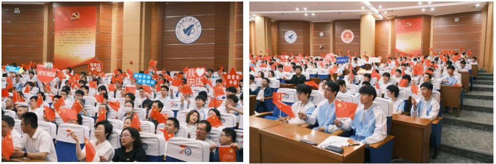 上午9时,大会正式开始,当雄壮的国歌奏响,大家自发起立肃立,高唱国歌;当受阅部队迈着铿锵有力的步伐依次通过天安门广场,铁甲洪流彰显强军实力,空中梯队划出壮美航迹,现场不时响起热烈掌声与由衷赞叹,每一个画面都让师生们心潮澎湃,深刻感受到中华民族从站起来、富起来到强起来的伟大飞跃。