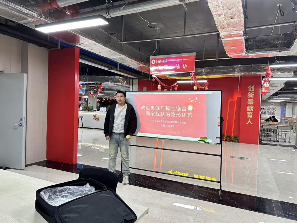 孙富权分享的主题是“政治忠诚与稀土镁合金:国家战略的隐形纽带”,他表示作为一名研究稀土镁合金的“材料人”,我们站在了这个交汇点的最前沿。目前的工作,完美地诠释了何为“把个人理想追求融入党和国家事业之中”。我们不仅要成为一名优秀的科学家或工程师,更要成为一名有家国情怀、有责任担当的社会主义建设者和接班人。