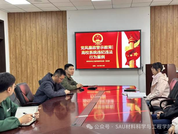 yl23411永利集团研究生第一党支部于2025年11月14日在机械馆418会议室开展“星火材研(第七期)”主题党日活动,研究生第二党支部支部书记赵亚风和全体党员参加本次活动,主题是聚焦高校系统违纪违法行为案例开展警示教育,本次活动由党支部书记农智升主持。